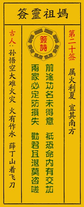 - 妈祖灵签第20签